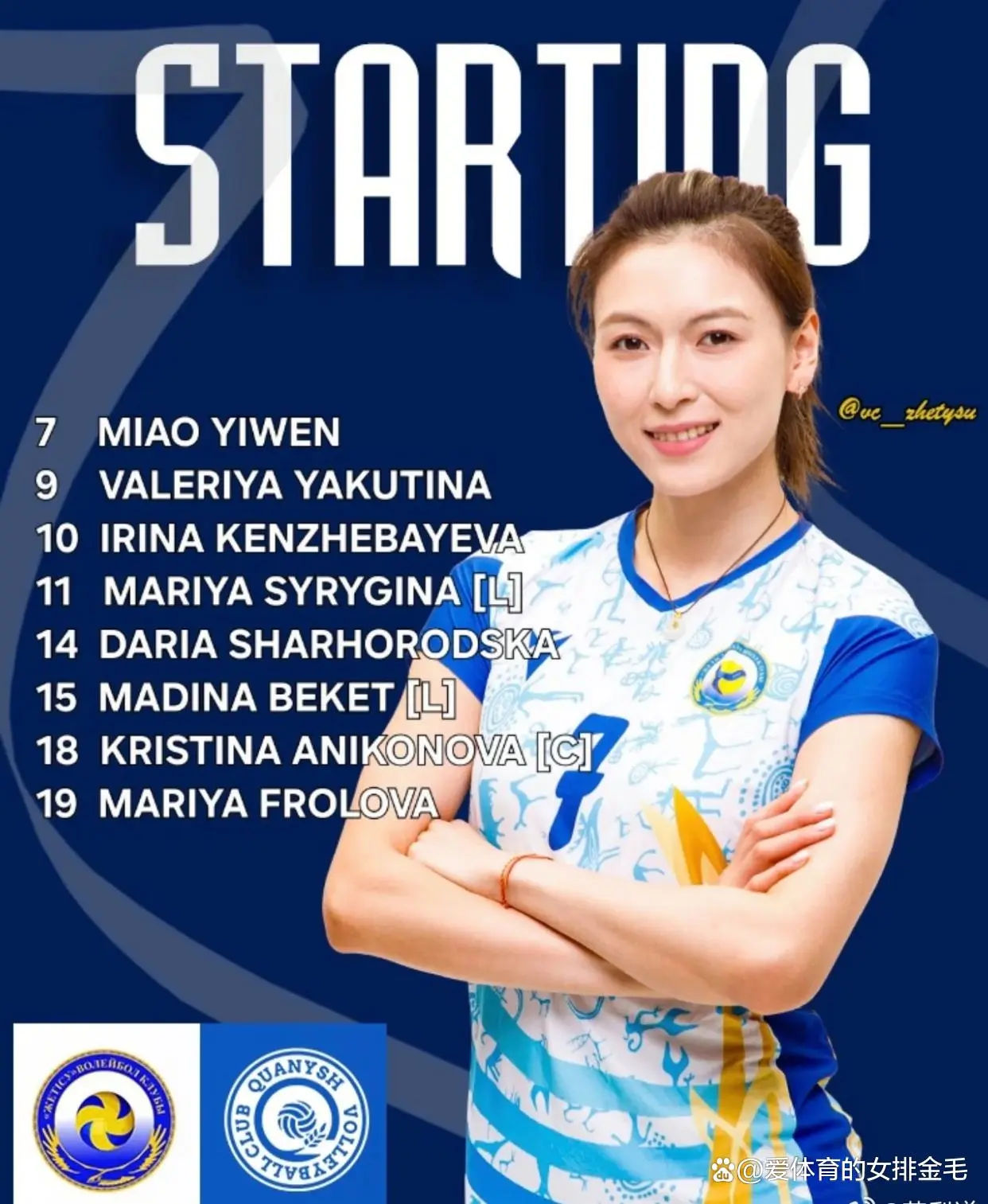 另一边哈萨克斯坦联赛迎来榜首大战,积分榜前二的杰特苏与库阿内什正面交锋,缪伊雯领衔的杰特苏以3-1(25-23/27-25/20-25/25-17)力克对手,拿下这场强强对话的胜利。比赛中缪伊雯首发出战,面对联赛第二的强力拦防依旧发挥出色,关键时刻一锤定音帮助球队锁定胜局。